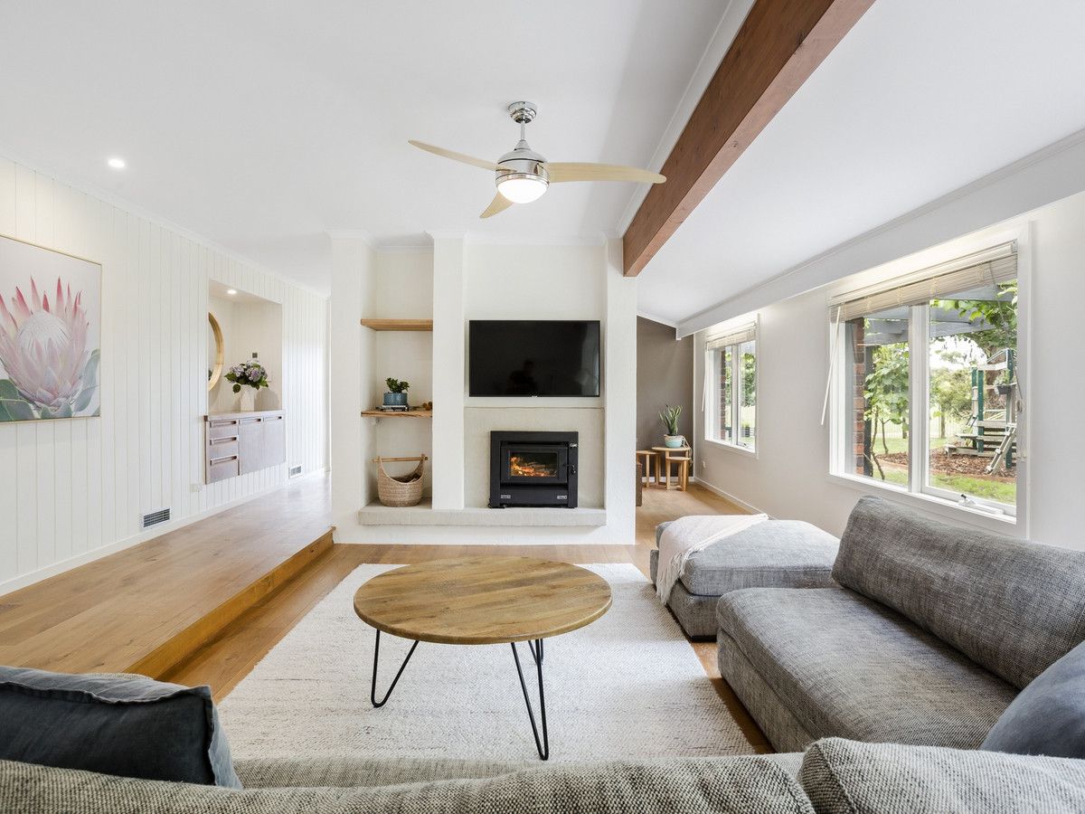 With magical vistas over the adjoining farmland to the north-west and a super-handy position to both the beach and the village this beautifully renovated three-bedroom, three living zone family home is the premier choice for the ultimate sea / tree change.
