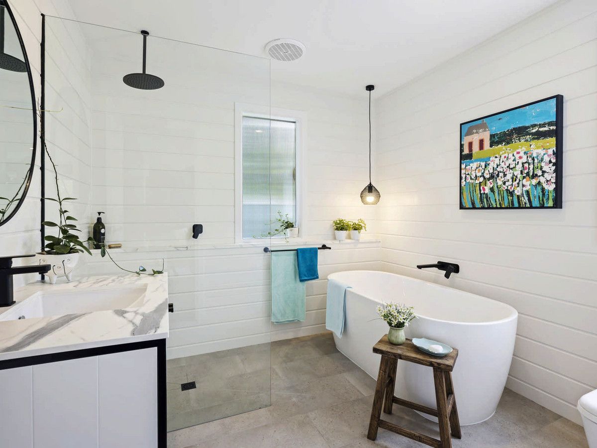 The main bedroom is finished with VJ lining boards, walk-thru robes and a new deluxe ensuite with double vanity and spring garden inspired feature wall to brighten up your day. Two additional bedrooms both finished with coastal /country flair and the new family bathroom with teardrop bath and euro-laundry are all located on the lower level.