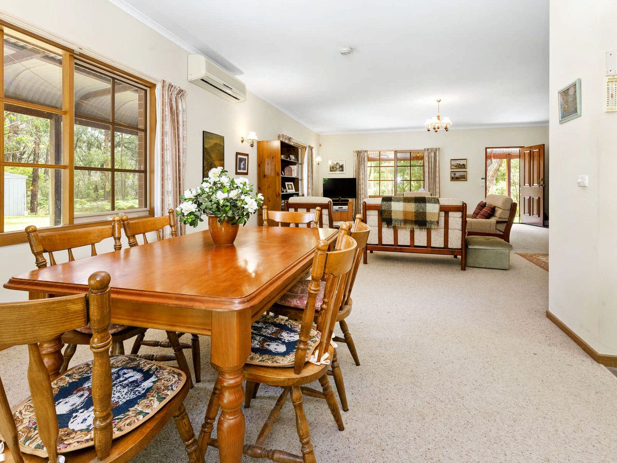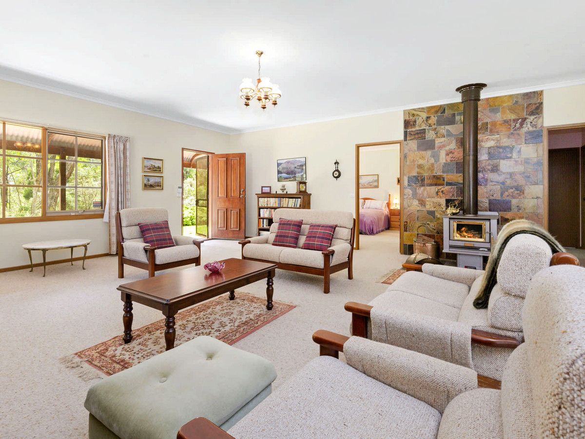 The home with its traditional bullnose verandah that extends around the northern and western sides to the southern entry to the main dining / living room. The open plan living has the generous-sized kitchen with wood cabinetry and large pantry adjoins the dining area and living room that's fitted with wood fire and air-conditioning. The king-sized main bedroom with built-in-robes and semi-ensuite and second bedroom with robes are carpeted as is the home, making this perfect for your weekend bushland retreat or the ultimate get away from it all home.